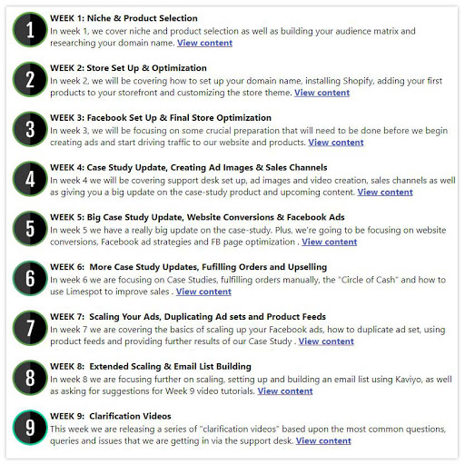 - This is how the training is laid out. You get all 9 weeks’ content instantly )…